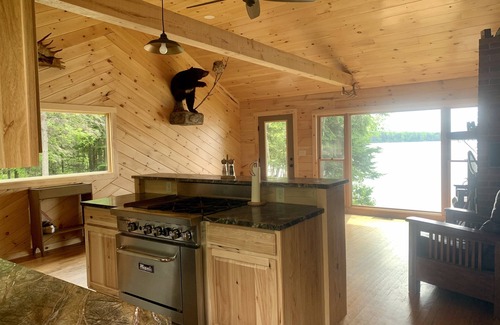 Siga el sinuoso camino de tierra de Chestnut Lane hasta la penúltima cabaña a la izquierda. Aquí encontrarás Dragonflies Den, un refugio de soledad ubicado en las tranquilas costas de Quimby Pond. Puede elegir estacionar en el lote de desbordamiento superior o en la entrada de gravilla al lado del cobertizo de madera aserrada y el garaje. Encontrarás que el garaje está bien abastecido con canoas, kayaks, chalecos salvavidas, flotadores de natación y demás. Abra la puerta de entrada a la cabina y será recibido con una cocina bien equipada. A su derecha está la sala de lavandería con espacio adicional para almacenar artículos de despensa. Puede colgar su equipo de exterior en uno de los dos armarios de abrigos justo dentro de la puerta. Al final del pasillo a su derecha están las cuatro habitaciones, que constan de dos habitaciones queen, una habitación con dos camas individuales y una habitación con una litera doble. Entre estos se encuentra el primer baño completo. De vuelta por el pasillo y frente a la cocina, encontrará el comedor, con una rústica mesa de picnic junto a una hermosa chimenea de piedra, ambas con una vista palaciega a través de una gran ventana de plácido estanque de Quimby. Disfrute de sus comidas mientras observa a los patos hacer lo mismo desde el jardín delantero, mientras los bribones se deslizan por la superficie del agua en el fondo. A través de una pequeña puerta se encuentra la última de nuestras habitaciones, la espaciosa sala de reunión. Aquí tenemos un sofá, un sofá de dos plazas y un sillón de gran tamaño, todo reclinable con un televisor de 50 pulgadas, reproductor de DVD y una colección de DVD. ¿Prefieres algo un poco más discreto? También hay una variada selección de libros, juegos de mesa, o simplemente caliéntate junto a la estufa de leña, disfrutando de las vistas desde las numerosas ventanas. ¿Pero qué más hay para hacer? La primavera trae la legendaria pesca con mosca a la puerta de tu casa. La pesca de verano continúa con la adición de natación, senderismo, ciclismo, observación de vida silvestre y deportes de motor. La ciudad también cobra vida con una amplia variedad de deliciosos restaurantes, teatros, playas y actividades recreativas. ¿Se acerca el otoño? Aquí el asomarse de las hojas no puede ser vencido, y la vida silvestre abunda como ciervos, osos, pájaros y demás listos para el invierno. A medida que avanzamos en la última temporada, Rangely se convierte en un refugio para motos de nieve. Con la taxidermia original y el arte rústico en todo este campamento, junto con la rara privacidad de esta propiedad, tiene la seguridad de unas vacaciones que no olvidará.