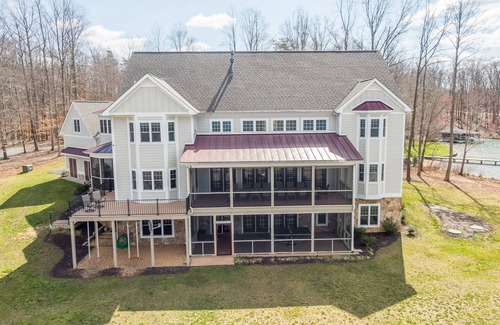 Venga a visitar esta hermosa casa de 7 dormitorios y 7 baños frente al mar en la principal comunidad de Noah´s Landing en el lado privado del lago Anna. Disfrute de las magníficas vistas desde cada habitación. Relájese en el espacioso de 2 pisos gran sala con un montón de asientos y una chimenea de gas. La cocina gourmet se adapta fácilmente a grandes grupos con dos lavabos, dos hornos, dos lavavajillas, dos microondas, y dos refrigeradores. Otros puntos destacados incluyen la despensa y un total de 80 pies cúbicos de espacio en el refrigerador / congelador (tres refrigerador / congelador para mantener todo frío!). Hay una barra de desayuno para sentarse añadido, así como un rincón de desayuno octogonal con una vista panorámica. Para su disfrute al aire libre tenemos una playa privada (arena natural en el agua y pendiente suave), el muelle cubierto con una tercera malla en porche (dos en la casa) y enormes terrazas, parrilla de gas de gran tamaño, gran cancha de voleibol de arena, herraduras, set de Juegos, tetherball, futbolín, ping pong, toboganes de agua, y el área media cancha de baloncesto.