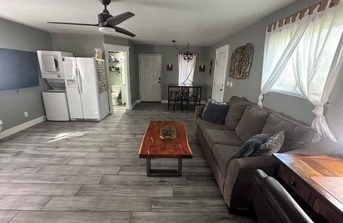 Al instalarte en este alojamiento de 1 dormitorio y 1 baño, encontrarás una sala de estar, un sofá cama, una zona para barbacoas y aire acondicionado. El cuarto de baño incluye un secador de pelo, toallas y papel higiénico. La cocina está equipada con placa de cocina y frigorífico, además de cafetera y tetera, máquina de hielo y olla para cocinar langostas. Y gracias a la lavadora y la secadora, podrás viajar con poco equipaje.