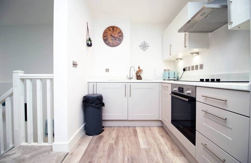 A stylish, modern one bedroom Maisonette style apartment with upstairs living room and open plan kitchen plus downstairs bedroom and bathroom. The apartment is centrally located just outside of the town centre and also Westbourne. Shops, restaurants and bars are a short walk away and yet the apartment benefits from being in a quiet road, with Bournemouth gardens just a short walk away, providing a peaceful route into the centre of Bournemouth and down to the Beach. The apartment sleeps four This stylish modern maisonette has its own private entrance at ground level, offering both comfort and convenience. A short flight of stairs leads to the bright open-plan living area with a Smart TV, a sofa bed (sleeps 2), and a dining table for shared meals. The adjoining kitchen is fully equipped for any length of stay, making it easy to cook and feel at home. Downstairs, the spacious main bedroom includes a comfortable double bed, mirrored wardrobes with ample storage, and a second Smart TV for relaxing nights in. Off the hallway, you’ll find a modern bathroom with a full-size bath and overhead shower — perfect for unwinding after a busy day. Guests benefit from a private parking space, with plenty of additional free street parking nearby — a real bonus in this part of Bournemouth. With stylish interiors, practical amenities, and a convenient location, this maisonette is ideal for couples, friends, or small families looking for a comfortable base for both short breaks and longer stays.