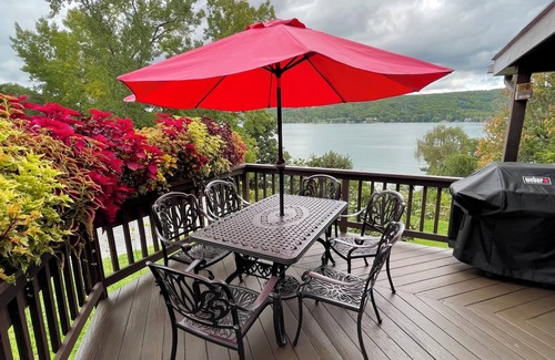 Hay 3 niveles en esta propiedad recientemente renovada del lago Keuka con capacidad para 14 personas en climas cálidos.
