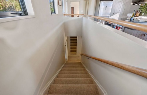 Distribuido en dos niveles, Puketapu ofrece un amplio espacio para que todos se unan en el espacio abierto superior de la sala, el comedor y la cocina. Luego, al final del día, cuando es hora de relajarse, todos pueden encontrar un lugar cómodo para descansar en las seis habitaciones disponibles.