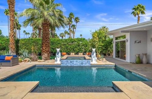 Puma Palms Paradise Palm Springs Se encuentra en Tahquitz River Estates. Puma Palms Paradise Palm Springs ofrece alojamiento, con Instalaciones de bienestar, Barbacoa/Cocina al aire libre, Internet, Entre otras comodidades. Estas características Casa Instalaciones de bienestar, Barbacoa/Cocina al aire libre, Internet, Para que su estadía sea cómoda.