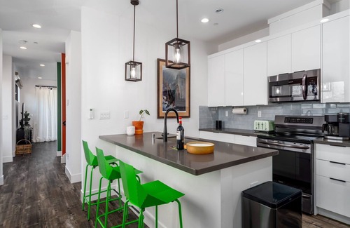 La cocina está equipada con horno, placa de cocina y frigorífico, además de cafetera y tetera, hervidor eléctrico y máquina de hielo. Disfruta del wifi y de la televisión. El cuarto de baño incluye un secador de pelo, toallas y jabón. Y no tendrás que llevarte ropa de más, porque podrás aprovechar la lavadora y la secadora. Otras comodidades de este alojamiento de 2 dormitorios y 2.5 baños incluyen ropa de cama, una tabla de planchar, aire acondicionado y calefacción.