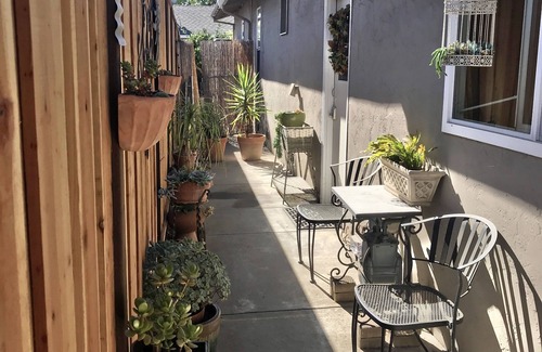 Shabby Chic suite privada. 320 pies cuadrados Pie. Entrada privada, barrio amigable. Dormitorio y baño privado completo, centro de refrigerios. A 5 minutos del campus de E Bay Hamilton. A 5 minutos de la estación de tren ligero, a 12 minutos del centro de la ciudad, a 25 minutos de Santa Cruz.