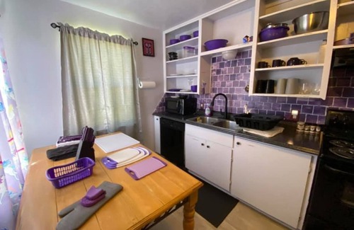 La cocina está equipada con horno, placa de cocina y frigorífico, además de cafetera y tetera, hervidor eléctrico y máquina de hielo. Conéctate al wifi, o relájate frente a un Smart TV. Podrás viajar con poco equipaje, porque tendrás una lavadora y una secadora a tu disposición. Otras comodidades de este alojamiento de 2 dormitorios y 1 baño incluyen servicio de limpieza disponible a petición, aire acondicionado, calefacción y una mesa de comedor.