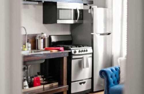 Prepara una comida casera en la cocina, equipada con horno, placa de cocina y frigorífico, además de cafetera y tetera, microondas y utensilios de cocina. Conéctate al wifi, o relájate frente a televisión. El cuarto de baño incluye un secador de pelo y toallas. Podrás viajar con poco equipaje, porque tendrás una lavadora y una secadora a tu disposición. Otras comodidades de este alojamiento de 1 dormitorio y 1 baño incluyen ropa de cama, una tabla de planchar, aire acondicionado y calefacción.