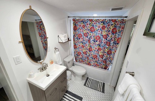 Al instalarte en este alojamiento de 2 dormitorios y 1 baño, encontrarás una sala de estar y aire acondicionado. El cuarto de baño incluye un secador de pelo, toallas y papel higiénico. Prepara una comida casera en la cocina, equipada con horno, placa de cocina y frigorífico, además de cafetera y tetera, hervidor eléctrico y máquina de hielo. Podrás viajar con poco equipaje, porque tendrás una lavadora y una secadora a tu disposición.