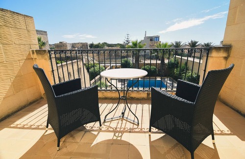 Dar Ta Censina situado en el tranquilo pueblo de Ghammar es nuestra última incorporación. Esta super personaje a casa con capacidad para seis personas dentro de 3 dormitorios independientes, todas con baños en suite. Aunque de nueva construcción esta propiedad ha sido diseñado con las características típicas de la zona. Paredes de cal de piedra, vigas de madera y arcos, junto con pisos típicos estampadas realzan el carácter y el encanto de esta propiedad. Antiguos pinos Mobiliario, junto con la inclusión de un hermoso altar en la habitación de estar en el dormitorio principal hacen de esta casa muy especial! No se han escatimado gastos en la creación de este super casa de vacaciones. Una gran cocina totalmente equipada / comedor y sala de estar cómoda ventaja en una amplia zona de piscina con tumbonas y barbacoa Abiertas vistas del valle hasta el Faro de Jordania - un punto de referencia en la isla de Gozo se disfrutan desde la zona de Dar Ta terrazas y piscina Censina.