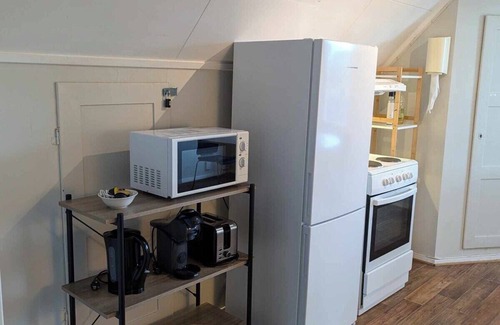 Railway Loft, a cozy studio apartment in the heart of Narvik. It's perfect for both short and long stays, with everything you need within walking distance. There's a shopping mall nearby with lots of stores, and it's just 150 meters to the train station and bus connections.
