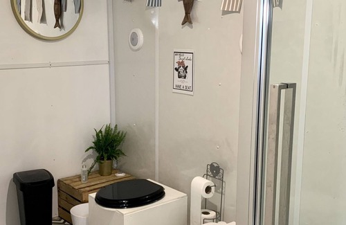 Your sleeping area is cosy, immaculately clean and decorated with luxurious bedding upcycled furniture. There are extra blankets for use whilst sitting outside in the evening around your own fire pit. The peace and tranquillity with the distant sounds of the waves lapping from the whitsand bay coast is an area of outstanding natural beauty, should ensure a restful nights sleep and wake up feeling refreshed to a freshly made breakfast hamper delivered to the kitchen each morning. We have everything needed to relax, explore and above all enjoy this little paradis