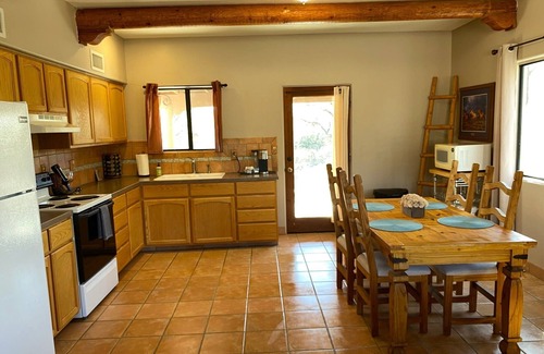 Nuestra hermosa casita para invitados de 1 dormitorio / 1 baño se encuentra en un rancho de 3 acres en la base del monte. Lemmon en Tucson, Arizona. El plano de planta abierto de la casita y los techos altos ofrecen a los visitantes una escapada espaciosa y cómoda a las afueras de los límites de la ciudad de Tucson, ¡pero a minutos de todo!