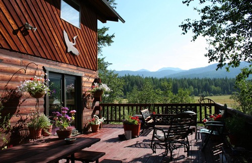 El South Fork Ranch (anteriormente llamado Apikuni ') es absolutamente único y atractivo dada su ubicación. Estamos a solo dos millas de la autopista principal ... no muy lejos de restaurantes, supermercados, farmacias, bancos, Glacier Park y todas las otras 'cosas' que necesitamos. Sin embargo, el South Fork Ranch está rodeado de espacios abiertos, ubicado entre la casa familiar de los propietarios, el bosque nacional y el desierto. No hay ruido de la multitud! solo los sonidos de South Abbott Creek y las aves que anidan a lo largo de sus orillas. Este mismo riachuelo se puede escuchar a través de las ventanas abiertas en ambas casas, lo que ayuda a adormecer a uno a dormir profundamente. También puede entretener a sus hijos sin la preocupación de las aguas profundas. Este arroyo es alimentado por grandes estanques de castores y manantiales en toda la zona rapariana al sur del rancho. Elegimos el nombre "South Fork" para nuestro rancho debido a nuestra ubicación en el área de South Fork River del Sistema Flathead River. La mayoría de los límites del Parque Glacier se encuentran en los ríos North Fork y Middle Fork de la misma vía fluvial.