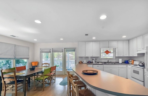 ¡The Beach House tiene un gran porche acogedor con suficientes sillas y mecedoras para convertirte fácilmente en uno de tus lugares de descanso favoritos en esta casa de campo! Una vez que ingrese, notará de inmediato la abundancia de ventanas a lo largo del costado y en la parte posterior del área de comedor, lo que lo hace brillante y agradable. El plano de planta abierto y espacioso, con mucho espacio para que su familia y amigos lo visiten, está muy bien decorado.