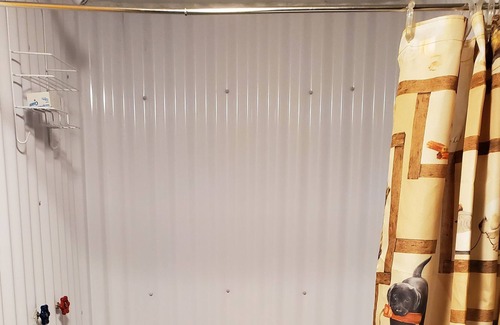 Agregué esta habitación a mi granero en 2019, tiene dos camas individuales y un futón plegable de tamaño completo. Hay una televisión, mini nevera, tostadora y encimera con una sartén. También una gran parrilla de gas afuera y un anillo de fuego con madera provisto para tener una fogata. El baño está en la parte trasera de la habitación con una gran ducha. Aire acondicionado y calefacción por gas sin ventilación. Del 1 de octubre al 1 de febrero, esta sala y otra pueden estar ocupadas. El resto del año solo reservo una habitación a la vez.