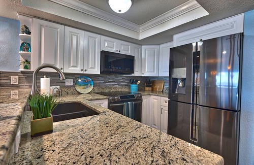 Cada habitación tiene una vista del agua, la principal frente a la playa y la otra frente al canal intercostero. El balcón de la sala de estar tiene vistas a los exuberantes jardines tropicales y las dunas de arena y las aguas azules del Golfo de México. Una moderna cocina totalmente equipada, amplio y luminoso salón / comedor y 2 baños completos completan el paquete.