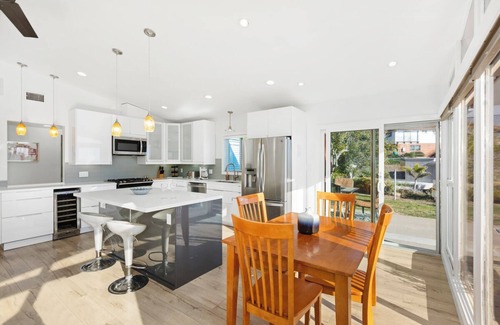Aparte de todo lo que se acaba de remodelar en un estilo contemporáneo, esta casa de vacaciones tiene las vistas más impresionantes de Pacific Beach, Sail Bay y el horizonte del centro. Disfrute de este tranquilo vecindario por las mañanas y las tardes en el patio delantero con una taza de café o una copa de vino con vista al océano.