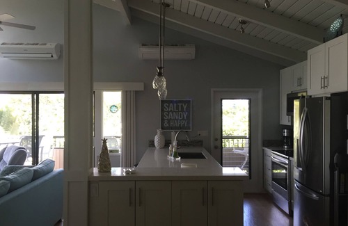 Esta hermosa casa adosada ha sido completamente renovada. ¡Mis hijas y yo hemos decorado nuestra casa en lo que llamamos "beach chic"! ¡Es genial, cómodo y brillante! La cocina ha sido completamente remodelada con gabinetes nuevos, encimeras de cuarzo y todos los electrodomésticos nuevos. Los tres baños también se han actualizado con nuevos gabinetes, encimeras de cuarzo, nuevas duchas, lavabos e inodoros. Hay 3 nuevas unidades de aire acondicionado separadas, junto con nuevos ventiladores de techo, en la sala de estar y en cada habitación.