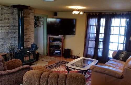 Truley es una propiedad única en esta área donde puede pasar el rato o entretenerse cómodamente, mientras se encuentra a minutos de la ciudad, Cottonwood Pass, el río Arkansas y, por supuesto, muchas tierras y montañas públicas. Ofrecemos 3 camas Queen, 2 en habitaciones privadas, 1 en una oficina convertida con puertas de privacidad, 1 sofá cama de tamaño completo en la habitación familiar, 1 cama King en el maestro con asiento de amor para niños pequeños, cómodo sofá extra largo en la sala de estar, cama abatible, 2 cunas, 1 cuna portátil Pack N Play disponible para niños, 6 televisores de pantalla plana (TV satelital con HBO), WiFi, estufa de leña, enormes mesas de comedor con capacidad para 10 personas, cocina totalmente equipada del chef, gran cubierta cubierta con impresionantes vistas, comederos para pájaros (incluidos comederos para colibríes), parlantes al aire libre, bañera de hidromasaje para 6 personas, muchas mesas y sillas para el entretenimiento al aire libre. Relájate mientras disfrutas de exuberantes prados con flores silvestres, álamos, 5 arroyos, 3 estanques y mucha vida salvaje. Nuestro rancho combina la naturaleza virgen con las comodidades modernas, desde nuestra casa de troncos actualizada hasta los ciervos, ardillas y arroyos balbuceadores. Estamos aquí para servirle y ayudarlo a tener las mejores vacaciones de su vida.