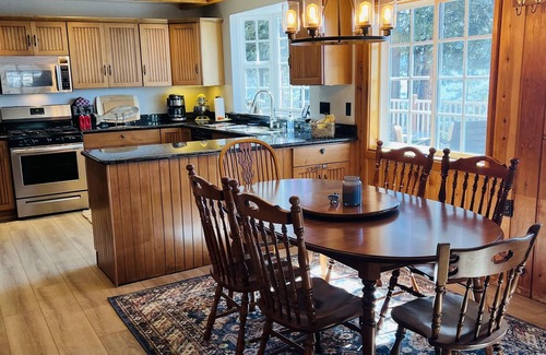 La cabina está impecablemente cuidada y bien equipada. Disfrute de Internet inalámbrico, televisión por cable, un sistema de sonido SONOS multizona. Nueva ropa de cama y toallas limpias en todo. La cocina con encimera de granito está completamente equipada con todas las comodidades, y cuenta con un horno doble JennAir con 5 quemadores de gas, refrigerador con máquina de hielo y lavavajillas. Parrilla de gas al aire libre. Nuestra cocina tiene todo lo que necesita para hacer una comida gourmet después de un largo día en el lago. Esta es nuestra casa de vacaciones de ensueño, y queremos que sea la suya también, por lo que hacemos todo lo posible para asegurarnos de que tenga lo que necesita para unas vacaciones relajantes junto al lago.