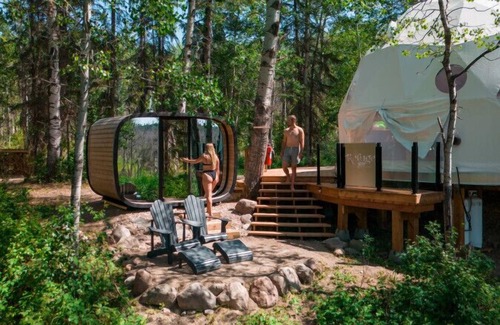 Refuge Bay Aer XL Dome - Luxury Off Grid Escape Se encuentra en Central Alberta. Refuge Bay Aer XL Dome - Luxury Off Grid Escape ofrece alojamiento, con Balneario, Chimenea/Calefacción, Barbacoa/Cocina al aire libre, Entre otras comodidades. Estas características Casa Balneario, Chimenea/Calefacción, Barbacoa/Cocina al aire libre, Para que su estadía sea cómoda.