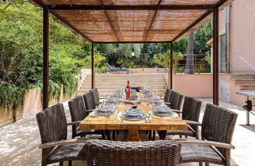Esta villa cuenta con 5 dormitorios y dispone de patio privado cercado y patio. La cocina está equipada con lavavajillas, y también encontrarás toques exclusivos como piscina privada y chimenea.