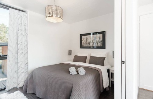 The sparkling bathroom offers a vanity stocked with all the essentials and a modern toilet. The luxe double shower room is located by the sauna where you step inside, sit back and let the steam invigorate your senses with a selection of sauna scents to choose from.