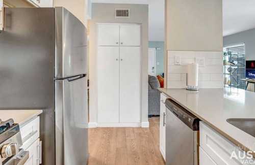 Este apartamento tan agradable en Austin lo pone todo a tu alcance. Si subes al coche, estarás a 8min en coche de Sixth Street y a 8min en coche de Centro de Convenciones de Austin. Además, el alojamiento dispone de aparcamiento en las instalaciones donde podrás dejar tu vehículo.