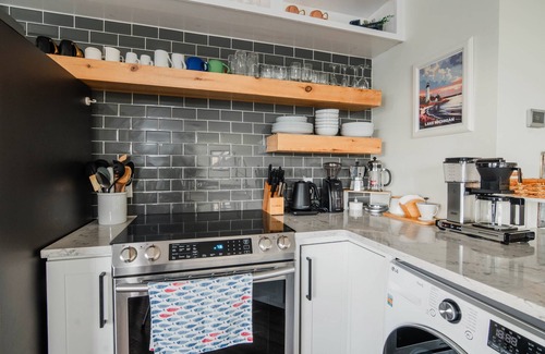 Este alojamiento de 1 dormitorio y 1 baño cuenta con una sala de estar, un comedor y aire acondicionado. El cuarto de baño incluye un secador de pelo, toallas y jabón. La cocina está equipada con horno, placa de cocina y frigorífico, además de cafetera y tetera, máquina de hielo y microondas. Podrás viajar con poco equipaje, porque tendrás una lavadora y una secadora a tu disposición.