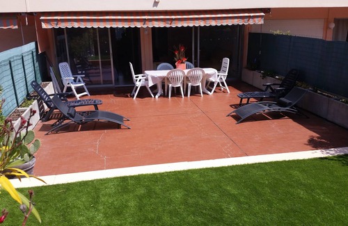 Apartamento de 2 habitaciones de 50 metros cuadrados, con una gran terraza y un jardín privado de 80 m2 cerrado en una residencia de lujo con piscina, tenis, petanca.