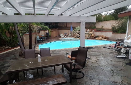 Nuestra casa está ubicada en Encinitas California y cuenta con un gran plano de planta abierto con mucho espacio en el patio trasero. Los huéspedes pueden disfrutar de su tiempo en nuestra sala de estar compatible con Apple TV o en nuestra piscina climatizada y spa. La propiedad está cerrada y también cuenta con 3 garajes con estacionamiento suficiente para 6 vehículos con mucho más estacionamiento en el camino privado. Los altavoces inteligentes controlados por eco de Amazon permiten una entretenida experiencia en el patio trasero.