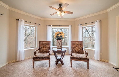 ¡Tranquilo y silencioso, cinco habitaciones y 4 1/2 baños de retiro! Esta casa ha sido nuestro retiro familiar durante muchos años. Nos encanta y esperamos que disfrute su tiempo aquí en Bella Vista. Nuestra casa es muy única. Fue construido con material de poli-acero y todas las paredes exteriores son de hormigón. Esto hace que nuestro hogar sea muy silencioso y de bajo consumo. Nuestra casa incluye un gran refugio para tornados, sala de ejercicios, oficina con impresora y una gran sala de bonificación en la planta baja.