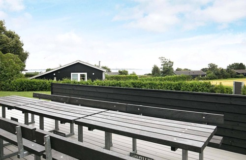 cocina abierta(fogón(eléctrico), campana extractora, cafetera, microondas, lavavajillas, nevera, congelador(60-99L), secadora, lavadora), salón-dormitorio(TV(cable, canales de televisión alemanes, canales de TV daneses), reproductor de DVD, radio, reproductor de CD, instalación estéreo, trona), dormitorio(cama doble, cama infantil), dormitorio(cama doble), dormitorio(2x cama individual), dormitorio(2x cama individual), dormitorio(2x cama individual), cuarto de baño(calefacción de suelo)(bañera o ducha, lavabo, váter), cuarto de baño(calefacción de suelo)(bañera o ducha, lavabo, váter), espacio vacío(4x cama individual plegable), videoconsola, sauna(6 personas), terraza, barbacoa, mesa de ping-pong, futbolín, dardos, billar, mesa para limpiar el pescado, calor geotérmico, calor geotérmico