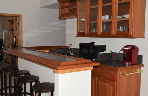 Muchas ventanas en todo el piso principal y el sótano aportan el exterior. Plano de planta abierto y cocina actualizada. Puede sentar 21 para una comida (6 en la mesa de la cocina, 8 en la mesa del comedor, 7 en la barra de la cocina). La sala de juegos incluye ping-pong y futbolín. El sótano para huéspedes también ofrece dardos y un juego de baloncesto. XBOX 360 y consola Wii y juegos también disponibles.