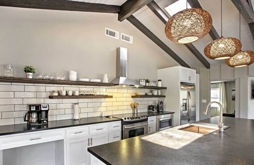 Si prefiere comer adentro, la cocina totalmente equipada viene con electrodom��sticos de acero inoxidable y una gran isla de cocina. También podrás reunir a las tropas alrededor de la espaciosa mesa de comedor de estilo de granja para disfrutar de la compañía de los demás en tu comida.