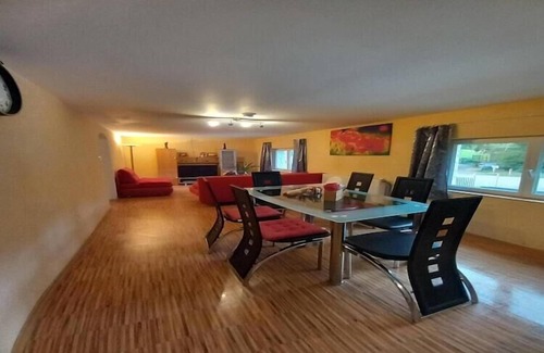 Ubicado en plena naturaleza en Turquestein-Blancrupt, a solo 7 km de Saint-Quirin, este espacioso apartamento vacacional de 120 m² ofrece un remanso de paz en la región de Alsacia/Vosgos/Lorena. Ubicado en la primera planta de una casa particular, cuenta con entrada privada, patio vallado y aparcamiento privado. En el interior, los huéspedes disfrutan de dos luminosos dormitorios, un amplio salón-comedor con cocina totalmente equipada y un baño con ducha y lavadora. Una amplia escalera con barandilla y protección para escaleras garantiza la seguridad de los niños pequeños. Se proporciona ropa de cama. En el exterior, la propiedad de 26 hectáreas bordea bosques y montañas, con dos estanques y un arroyo, perfectos para pasear y jugar al aire libre. Se admiten familias y perros. El patio delantero de 400 m² incluye un patio, mientras que el trasero se abre a una amplia zona verde. Ofrece una amplia sala de ocio de 50 m² con billar, dardos y bar, además de mesa de ping pong y petanca. Los lagos cercanos aptos para el baño incluyen Saint-Quirin (7 km), Abreschviller (12 km) y Étang du Stock (Langatte, 30 km). Ya sea que esté haciendo senderismo, relajándose o jugando con sus seres queridos, esta casa ofrece una escapada acogedora y activa en plena naturaleza.