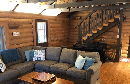 ¡Quédate en la cabaña de Jack! Esta es una hermosa cabaña de troncos de 2 pisos ubicada en el bosque junto a la histórica Ruta 66, a las afueras de Edwardsville, Illinois. El interior cuenta con una gran sala familiar espaciosa, tres dormitorios, dos baños, cocina completa, terraza acristalada y un porche cubierto con columpio. ¡Duerme hasta 6 cómodamente (una reina, una completa, tres gemelas)!