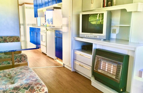 La caravana estática tiene una cocina, equipada con hornillos y horno a gas, nevera, hervidor de agua eléctrico, tostadora y todos los cubiertos y utensilios de cocina necesarios para cocinar para 5 personas.