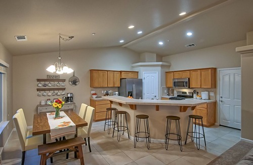 Ubicada en una calle tranquila pero aún dentro de la ciudad, esta casa de 4 dormitorios está configurada para satisfacer todas sus necesidades de relajación: un sofá grande, cómodo y configurable, una lujosa bañera, XBOX1 con Gamepass, un patio privado con cómodas mesas y sillas, colchones cómodos de alta calidad de la marca Serta y una sala de estar de planta abierta bien amueblada. Inicie sesión en sus cuentas de transmisión en cualquiera de los tres televisores inteligentes para acceder a los programas que desea ver o simplemente lea los canales de cable si lo desea. Los niños tendrán mucho que hacer en su propia sala de juegos privada configurada con XBOX1, K'nex, bloques, juegos de trenes, peluches, autos y juegos de mesa. ESTA ES UNA PROPIEDAD LIBRE DE HUMO. NO SE PERMITE EL USO DE PRODUCTOS DE MARIHUANA, VAPOR O TABACO EN LA PROPIEDAD, DENTRO O FUERA.