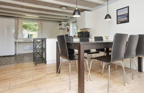 Layout: cocina abierta(fogón(eléctrico), campana extractora, cafetera, microondas, lavavajillas, nevera, congelador(100-139L)), salón-dormitorio(TV(satélite, canales de televisión alemanes, canales de TV daneses), radio, trona), dormitorio(cama doble, cama infantil, cama infantil), dormitorio(cama doble), dormitorio(cama doble), dormitorio(2x cama individual), cuarto de baño(calefacción de suelo)(bañera o ducha, lavabo, váter, lavadora), mirador, Bañera de burbujas(dentro de la casa, climatizada, 2 personas), sauna(dentro de la casa, climatizada, 4 personas), calefacción(radiador(es) eléctrico(s)), terraza, jardín, barbacoa, juegos infantíl