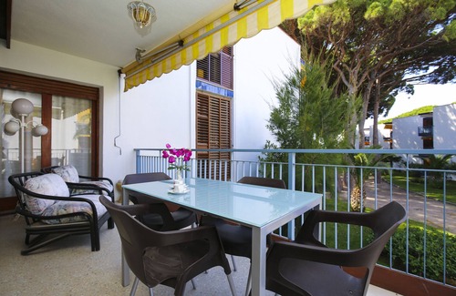 Desde la amplia terraza del apartamento podrás disfrutar de hermosas vistas al jardín, un lugar perfecto para relajarte y desconectar durante tus vacaciones.