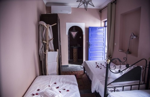 La habitación, perteneciente a un hermoso Riad de la antigua medina de Marrakech, se encuentra en el corazón de la medina medieval y hace que nuestra oferta sea muy atractiva para los viajeros que desean visitar Marrakech a pie y con un costo reducido.
