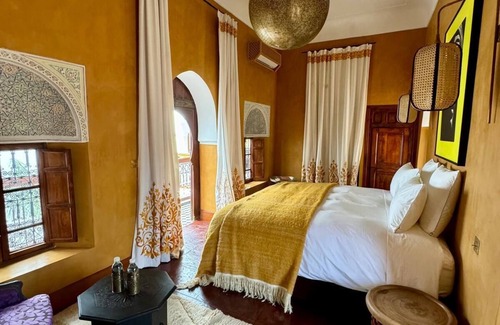 Este riad marroquí de 3 dormitorios y 3 baños se encuentra en Marrakech y es una ubicación fantástica desde la que recorrer los alrededores. A los amantes de la naturaleza y el aire libre les encantará estar a 9min a pie de Plaza des Ferblantiers y a 4min en coche de Plaza de Yamaa el Fna. Estarás a solo un paseo de Palacio de la Bahía y Museo Dar Si Said.