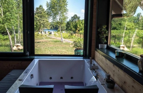 Comfortable Amenities: The chalet features air-conditioning, a fully equipped kitchen, and a cozy living room with a fireplace. Additional amenities include bathrobes, a spa bath, washing machine, and a private pool. Outdoor areas offer a sun terrace, picnic area, and barbecue facilities, ensuring a pleasant stay.