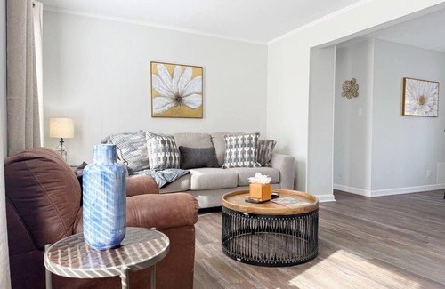 Escape to this enchanting 2-bedroom apartment in Evansville. With 2 queen beds and a cozy living room with a sofa bed, this space is perfect for a small group of guests. Enjoy the bidet-equipped bathroom and relax in the bathtub after a day of exploring. Complete with amenities like an iron, hair dryer, AC, and heating, this phenomenal rental has everything you need for a comfortable stay. A great place to call homebase while you're away, we hope you enjoy your stay.