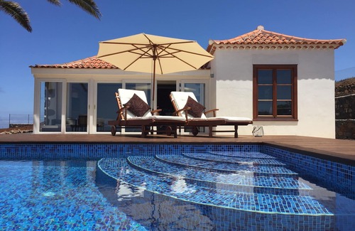 El nombre Palomar significa "palomar" y también es el nombre del área directamente en los acantilados de Puntagorda. En el lado norte de la casa hay un desfiladero que se abre al mar y conduce a la "Punta Gorda", el "promontorio grueso". Su refugio ofrece un hogar para muchas y raras especies de aves. Escuchas, más allá del silencio que se encuentra a menudo, las especies de aves más diferentes se comunican entre sí, por lo que el término "palomar" también es muy adecuado para esta área. La moderna y muy confortable Villa Palomar renovada ofrece en 65 metros cuadrados no solo todo el confort y el lujo, sino también desde todas las habitaciones una vista espectacular del mar y la hermosa costa atlántica. La piscina privada (3 mx 7 mx 1.45 m) con una vista infinita de ensueño lo invita a un baño relajado. El área al aire libre bajo la gran y majestuosa palmera canaria consta de varias terrazas de piedra con un cómodo banco de asiento y una cálida ducha al aire libre y una gran terraza de madera con mucha área para tomar el sol. La ducha al aire libre se encuentra al este de la zona de la piscina, está protegida del viento y la privacidad, pero al mismo tiempo permite una vista fantástica sobre el paisaje hasta el mar. Las acogedoras tumbonas y los muebles del salón hacen de su estancia en la piscina de agua salada una experiencia especial. Aquí tiene una vista de 180 grados del mar centelleante y una hermosa puesta de sol durante todo el año.