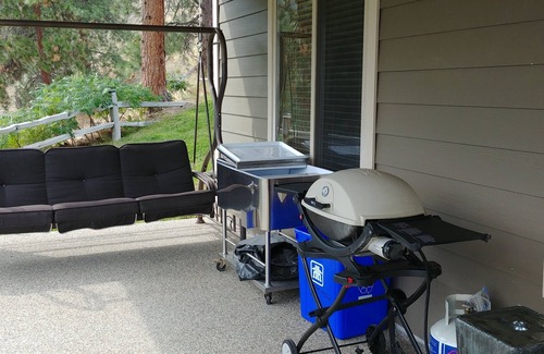 Nuestra espaciosa suite de 2 recámaras en nuestra casa ofrece privacidad mientras disfruta de las vistas del lago Okanagan desde el balcón o desde adentro. Estarás a 5 minutos en coche del centro de Peachland, a 5 minutos a pie de Hardy Falls (desove de salmón), a 10 minutos a pie de la playa de Antlers.