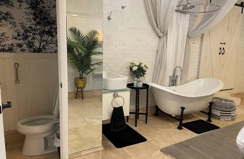 Take it easy at this unique and tranquil getaway. Close to downtown while feeling far away. This Master Suite includes a clawfoot tub, fireplace, and outdoor fire pit. Easy parking, you are 7 miles from downtown and if you are lucky, you will see deer walking through the front yard!