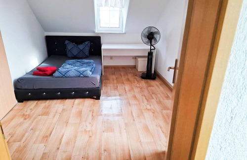 Room with queen size bed and bathroom, tv, Netflix, wifi | Apartamento en Rudolstadt