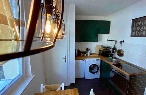 The kitchen is equipped with an oven, a stovetop, and a refrigerator, as well as a coffee maker, a microwave, and cookware. Connect to the WiFi, or get cozy in front of the TV. And there's a washing machine, so you can even pack a bit lighter. Other amenities at this 2-bedroom, 1-bathroom rental include bed sheets, an ironing board, and heating.